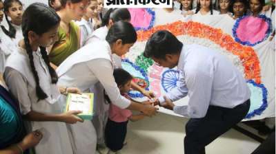 सरहद पर तैनात जवानों के लिए छात्राओं ने सौंपी कलेक्टर को राखी प्यार की डोर से तिरंगे में बनाया भारत का नक्शा