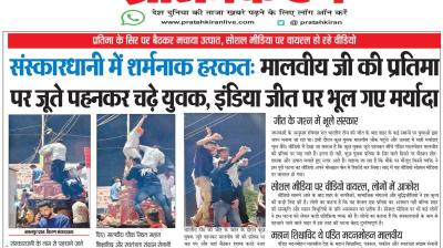 संस्कारधानी में शर्मनाक हरकत: मालवीय जी की प्रतिमा पर जूते पहनकर चढ़े युवक, वीडियो वायरल