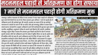 मदनमहल पहाड़ी से अतिक्रमण का होगा सफाया, सुप्रीम कोर्ट के आदेश पर प्रशासन एक्शन में