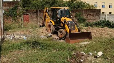 सरकारी जमीन पर बन रहा अवैध भवन ध्वस्त, नोटिस के बावजूद निर्माण जारी रखने पर चला बुलडोजर