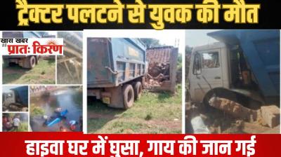 जबलपुर में दो सड़क हादसाः ट्रैक्टर नदी में पलटा, चालक की मौत, हाइवा के घर में घुसने से गाय की जान गई