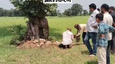 चमत्कार! पेड़ के तने में उभरी गणपति की आकृति, ग्रामीणों की उमड़ी भीड़