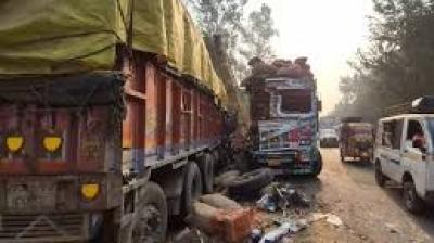 भीषण सड़क हादसा: दो ट्रकों की टक्कर में दो की जान गई, कई घायल