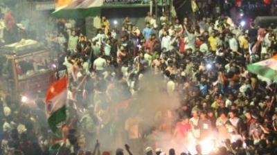 जीत की खुशी में झूमी राजधानी, दिल्ली में एक साथ मनाई गई होली-दिवाली