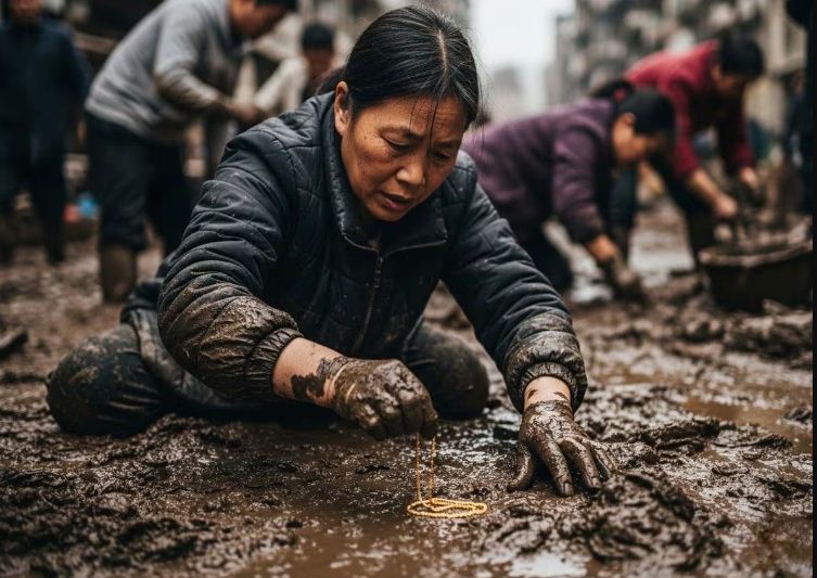 कीचड़ में सोना ढूंढते लोगों के वीडियो वायरल हो रहा है। घटना 25 जुलाई की सुबह की है जब वुची काउंटी में एक भीषण बाढ़ ने कहर ढह दिया। इसकी चपेट में सोने के आभूषण से भरी दुकान भी आई और यह पानी में डूब गई। पानी का बहाव इतना तेज था कि दुकान की मेन तिजोरी भी बह गई और उसके साथ 20 किलो से ज्यादा सोने-चांदी के कीमती गहने और नगदी भी बह गए। दुकान के मालिक ने बताया कि बाढ़ की चेतावनी पहले ही दे दी गई थी, लेकिन कर्मचारियों ने जरूरी सावधानी नहीं बरती। कीमती गहनों को सुरक्षित अलमारी में नहीं रखा।
