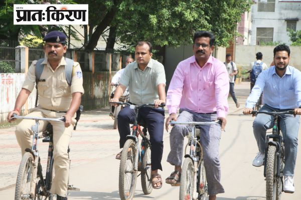 सुबह के समय कलेक्टर डॉ. सतीश कुमार एस ने अपने बंगले से संयुक्त कलेक्ट्रेट तक की करीब तीन किलोमीटर की दूरी 25 मिनट में साइकिल से तय की है। उनके साथ एसडीएम सिटी राहुल सलाडिया, तहसीलदार रघुराज नगर सौरभ मिश्रा सहित अन्य अधिकारी और कर्मचारी भी साइकिल चलाते नज़र आए है।
