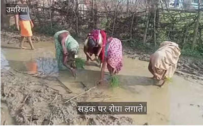 उमरिया की महिलाएं हुईं आगबबूला, सड़क की जगह बोया धान, वीडियो वायरल