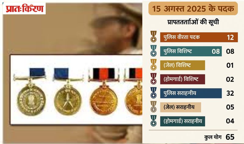 इस वर्ष जिन पदकों का वितरण होना है, उनमें ’’पुलिस वीरता पदक (12)’’, ’’पुलिस विशिष्ट सेवा पदक (8)’’, ’’जेल विशिष्ट सेवा पदक (1)’’, ’’होमगार्ड विशिष्ट सेवा पदक (2)’’, ’’पुलिस सराहनीय सेवा पदक (32)’’, ’’जेल सराहनीय सेवा पदक (5)’’, ’’होमगार्ड सराहनीय सेवा पदक (4)’’ और ’’जीवन रक्षा पदक (1)’’ शामिल हैं।