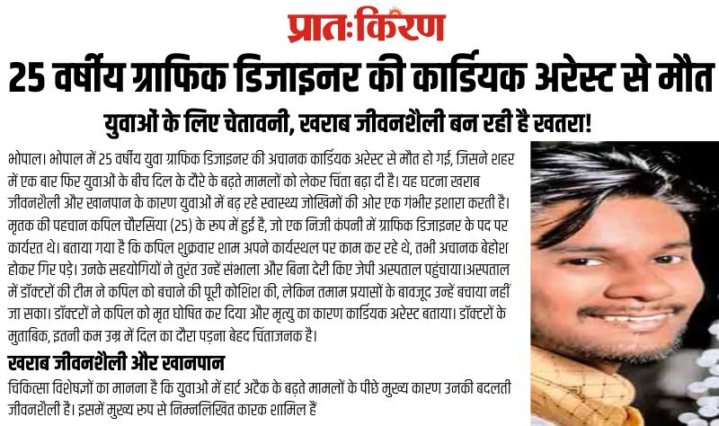 25 वर्षीय ग्राफिक डिजाइनर की कार्डियक अरेस्ट से मौत: युवाओं के लिए चेतावनी, खराब जीवनशैली बन रही है खतरा!
