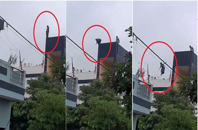 इसके बाद गुस्से में युवती तीसरी मंजिल पर गई और वहां से कूद पड़ी। वीडियो में देखा जा सकता है कि इस दौरान आवेश और उसके परिवार के लोग घटना को मोबाइल पर रिकॉर्ड कर रहे थे। परिवार के सदस्य युवती को अपशब्द भी कह रहे थे।