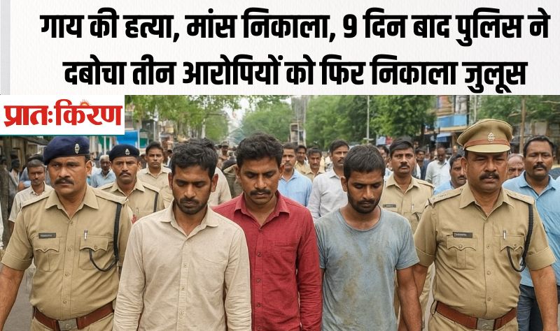 दिल दहला देने वाली वारदात: गाय की हत्या कर ले गए मांस, पुलिस ने तीन आरोपियों को पकड़ा, जुलूस निकाला गया