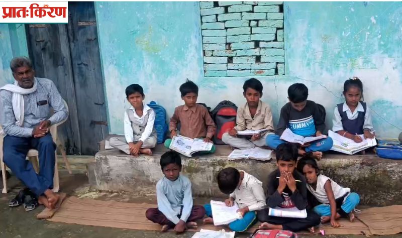 सड़क किनारे बैठकर पढ़ाई करने को मजबूर हैं मासूम छात्र 12 साल बाद भवन का पैसा मिला तो जमीन ढूंढ़े नहीं मिल रही