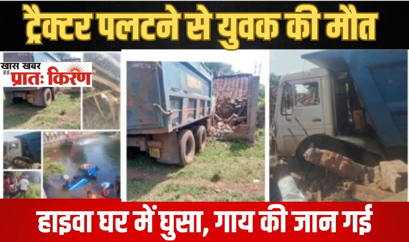 जबलपुर में दो सड़क हादसाः ट्रैक्टर नदी में पलटा, चालक की मौत, हाइवा के घर में घुसने से गाय की जान गई