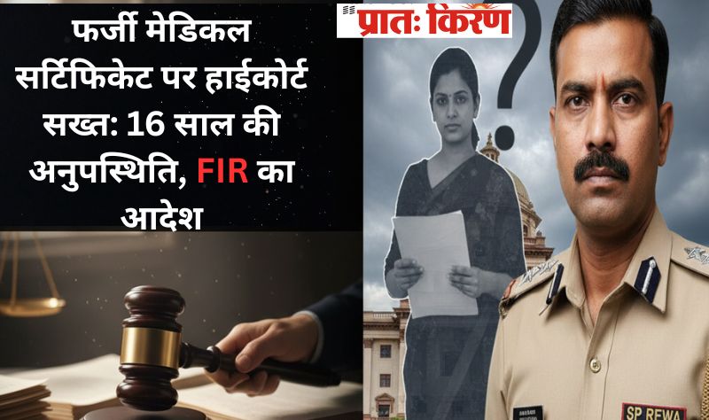 जबलपुर/रीवा। मध्य प्रदेश उच्च न्यायालय ने एक महत्वपूर्ण आदेश में, शिक्षाकर्मी ग्रेड-III की एक महिला याचिकाकर्ता की उस मांग को सिरे से खारिज कर दिया, जिसमें उसने 16 साल (2002 से 2017) की अपनी लंबी अनुपस्थिति को मेडिकल अवकाश में बदलने और नौकरी पर बहाल करने की अपील की थी। न्यायालय ने याचिकाकर्ता द्वारा प्रस्तुत चिकित्सा प्रमाणपत्रों को प्रथम दृष्टया फर्जी मानते हुए न केवल याचिका खारिज की, बल्कि रीवा के पुलिस अधीक्षक (SP) को संबंधित जालसाजी करने वाले व्यक्ति के खिलाफ आपराधिक मामला (FIR) दर्ज करने का भी निर्देश दिया है।