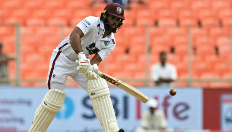 भारत की धरती पर 23 साल बाद वेस्टइंडीज ओपनर का शतक, अनोखे अंदाज में छक्का लगाकर बनाई सेंचुरी