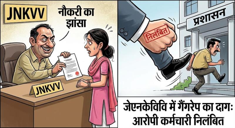 जबलपुर। जवाहरलाल नेहरू कृषि विश्वविद्यालय (जेएनकेविवि) के सुरक्षित माने जाने वाले परिसर को शर्मसार करने वाले गैंगरेप मामले में आखिरकार विश्वविद्यालय प्रशासन ने कड़ा कदम उठाया है। प्रकरण की गंभीरता और पुलिस से प्राप्त प्रारंभिक रिपोर्ट के आधार पर विवि प्रबंधन ने दोनों आरोपी कर्मचारियों को निलंबित कर दिया है। निलंबित किए गए कर्मचारियों में यूडीसी दुर्गाशंकर सिंगरहा और प्यून मुकेश सेन शामिल हैं।