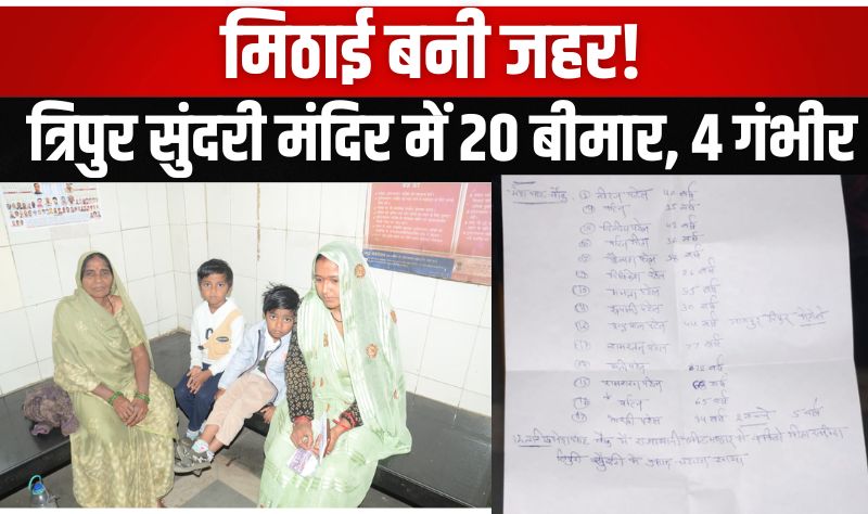 जबलपुर। शहर के प्रसिद्ध त्रिपुर सुंदरी मंदिर में आयोजित सुहागले कार्यक्रम के दौरान उस समय हड़कंप मच गया, जब मिठाई खाने के बाद अचानक करीब 20 लोग बीमार हो गए। सभी को उल्टियां और चक्कर आने लगे, जिससे कार्यक्रम स्थल पर अफरा-तफरी और भगदड़ की स्थिति बन गई।