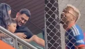 दरअसल, हार्दिक धोनी को काफी मानते हैं और उन्हें अपना आदर्श बताते हैं। आईपीएल के समय, जब भी हार्दिक की टीम का मुकाबला चेन्नई सुपर किंग्स से होता है, तो हार्दिक धोनी से मिलना और उनके साथ फोटो शेयर करना नहीं भूलते। भारत और इंग्लैंड मैच के बाद जब हार्दिक ड्रेसिंग रूम में लौट रहे थे तो उन्होंने स्टैंड्स में धोनी को देखा। ऐसे में हार्दिक जोर से चिल्लाए और धोनी को बुलाया। धोनी ने भी हाथ वेव कर हार्दिक को जवाब दिया। फिर दोनों के बीच कुछ बातचीत हुई। वहीं, माहिका और अगस्त्य भी खड़े थे। माहिका ने अगस्त्य का हाथ पकड़ा और हार्दिक की तरफ हाथ वेव करने कहा। इस पर धोनी भी अगस्त्य को दिखाने लगे कि हार्दिक कहां खड़े हैं और माही ने अगस्त्य से बातचीत भी की। इस क्यूट मोमेंट को देखकर हार्दिक भी मुस्कुराते दिखे।भारत की इंग्लैंड पर शानदार जीत में हार्दिक ने अहम भूमिका निभाई। उन्होंने पहले बल्ले से 12 गेंदों में ताबड़तोड़ 27 रन बनाए और बाद में गेंदबाजी में भी कमाल करते हुए फिल सॉल्ट और सैम करन जैसे महत्वपूर्ण विकेट हासिल किए।