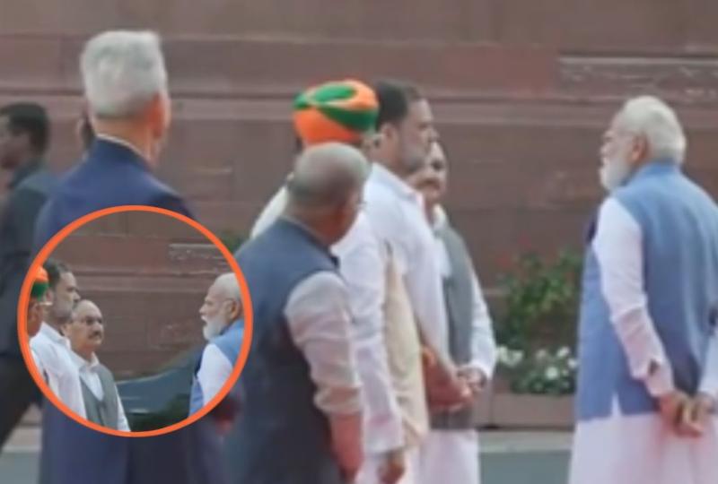 दरअसल, पीएम मोदी अपनी कार से बाहर निकलते हुए दिखे और राहुल गांधी के साथ कुछ देर, लेकिन पूरी तल्लीनता से बातचीत करने के लिए रुके। दोनों नेताओं ने आपस में कुछ बातें कीं और यह बातचीत काफी सौहार्दपूर्ण लग रही थी। तस्वीरों में उन्हें एक-दूसरे के करीब खड़े होकर पूरी एकाग्रता से बातचीत करते हुए देखा गया।