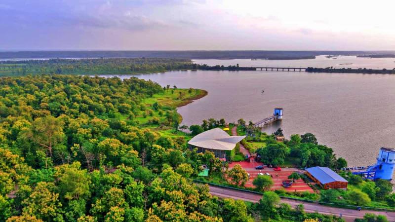 भारी बारिश से एक और जहां इंदिरा सागर डैम पानी से लबालब हो गया है. तो वहीं दूसरी ओर पानी बढ़ जाने से किनारों पर पसरी हरियाली और अधिक गहरी हो गई है. चारों ओर फैला पानी और उसके बीच उभरता यह टापू गोवा से कम नजर नहीं आ रहा है.