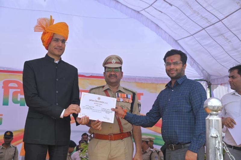 शासन प्रशासन के द्वारा चलाई जा रही राजस्व विभाग के योजनाओं और किसानों का समय सीमा में काम कराने और योजनाओं का पात्र हितग्राहियों को लाभान्वित करने सहित जो भी प्रदेश कार्यालय से प्राप्त आदेशों के तहत कलेक्टर लौकेश कुमार जांगिड के निर्देशानुसार किये गये कार्यों को लेकर उत्कृष्ट कार्य करने पर तहसीलदार सुभम मिश्रा को स्वतंत्रता दिवस समारोह के दौरान उन्हे प्रशस्त्री पत्र देकर कलेक्टर लौकेश कुमार जांगिड एंव पुलिस अधीक्षक डाॅ रायसिंह नरबरिया के द्वारा उत्कृष्ट कार्य के लिये सम्मानित किया गया है।