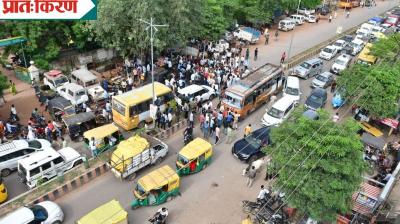 अन्नदाताओं का सब्र टूटा, रास्ता जाम एक घंटे तक फंसे रहे सैकड़ों यात्री और स्कूली बच्चे