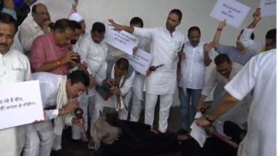 कांग्रेस ने विधानसभा में भैंस के सामने बीन बजाकर किया प्रदर्शन
