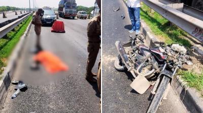 संतुलन बिगड़ते ही पानी में समा गई बाइक