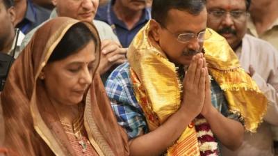 आबकारी केस में राहत के बाद मंदिर पहुंचे केजरीवाल-सिसोदिया