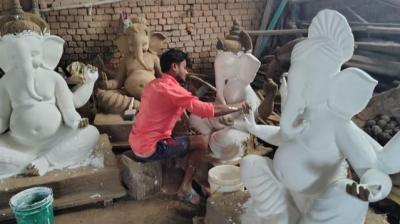 नई दिल्ली: कहीं सड़क किनारे बिना रंग-रोगन के रखीं गणपति बप्पा की मूर्तियां , तो कहीं धूप में सूखती गजानन की प्रतिमाएं और कहीं प्लास्टिक की पॉलिथीन से ढकी गणेश...